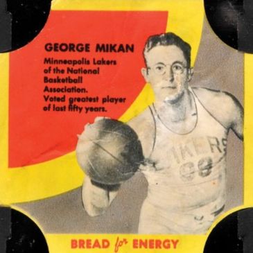 The Bread For Energy series consists of 42 different multi-sport and Hollywood celebrities. The 2 3/4" by 2 3/4" labels were distributed on the ends of loafs of various brands of breads and bakeries, including Junge’s Bread. These red, yellow and blue "cards" depict film actors, football players, wrestlers, boxers and four basketball players. Backs are blank and unnumbered.