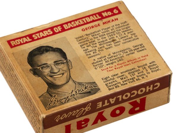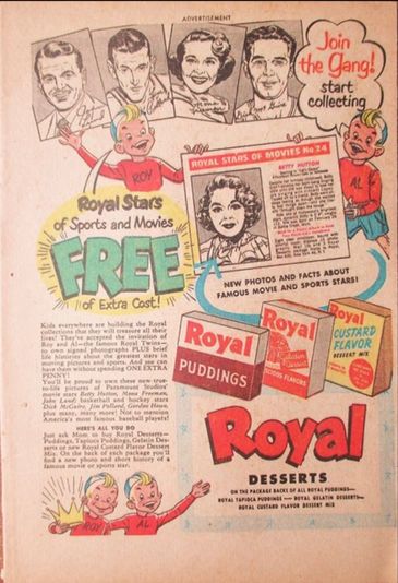 Royal Desserts Chocolate Flavor Pudding, the back of which contianed the George Mikan "card" (black).Royal Desserts Chocolate Flavor Pudding, the back of which contianed the George Mikan "card" (black).Comic ad for Royal Desserts including George Mikan.