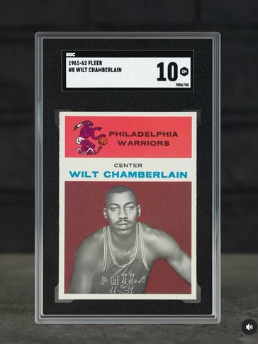 Depicted here is a photo of the SGC 10 slabbed 1961 Fleer Wilt Chamberlain. SGC President Peter Steinberg has said that this card may be "the most impressive trading card that I’ve ever seen."